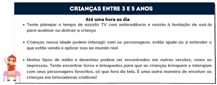 É possível que crianças utilizem as telas de forma saudável de acordo com os tempos limites de exposição. Já para o aprendizado, nessa faixa etária de até 4 anos de idade, é extremamente necessário focar em atividades que explorem a comunicação intrapessoal e a coordenação motora.